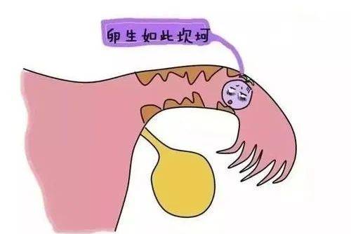 卵子成熟后,很顺利地从卵泡中排出,只是又高兴地太早,这个身体的主人有慢性输卵管炎,输卵管靠近卵巢的伞端部位发生黏连,把伞端的开口给封闭了,甚至伞端结构都不见了,形成输卵管积水。这个可怜的卵子姑凉,怎么也进不了输卵管,只好在输卵管卵巢周围无聊地画圈圈,直到生命的终结。